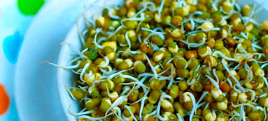 Almost any seed, grain or legume can be sprouted though some are tastier than others. You may try mung beans, alfalfa, wheat, peas, fenugreek, chickpeas, radish, fennel, celery seed, etc. These are most readily found in natural food stores. Remember to soak small seeds only for 4 hours and beans for 15 hours. You also can mix these seeds. Get a 2 liter wide-mouth jar and a piece of cheesecloth or old nylon stocking to fasten as a cover with a rubber band.
